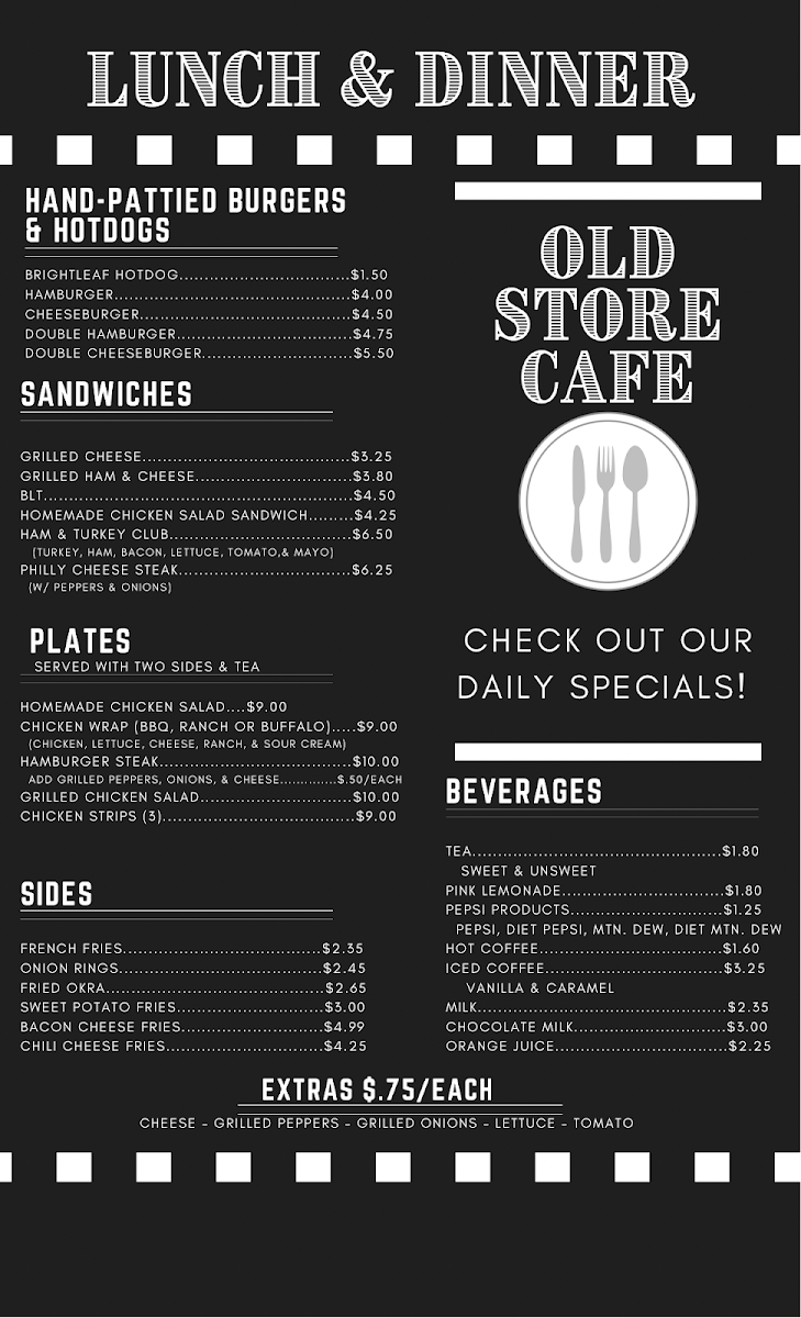 Welcome to Old Store Cafe, a hidden gem nestled in Newton Grove, NC. This charming spot is perfect for all-day dining, with a menu that delights both locals and travelers alike. Patrons rave about the double cheeseburger, reported to taste as if it just came from a farm. The sweet potato fries and chili cheese fries are equally popular, often described as perfectly crispy.